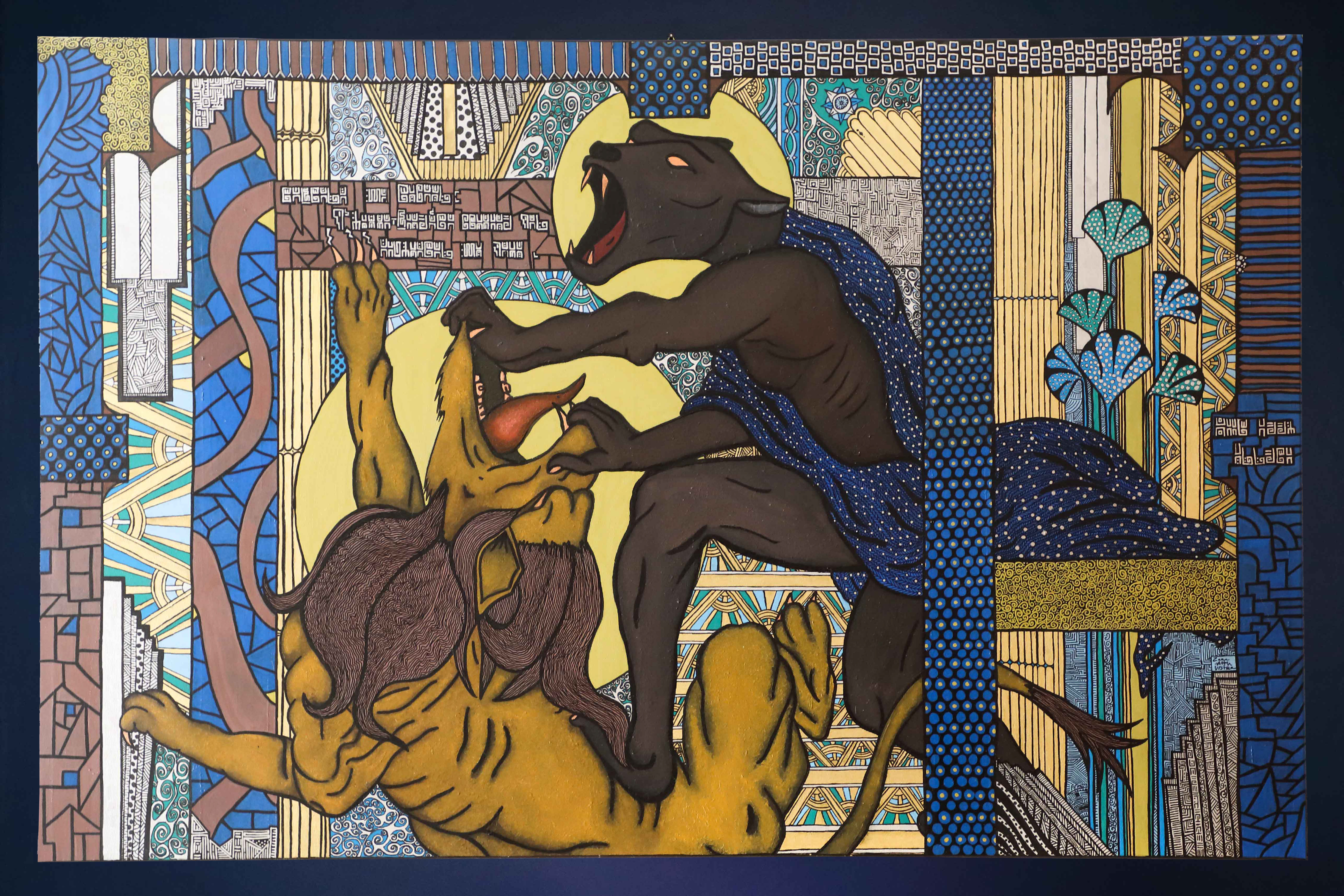 Composed of a dozen paintings, the series of animalities brings together the most emblematic creatures of Zaar’s bestiary.